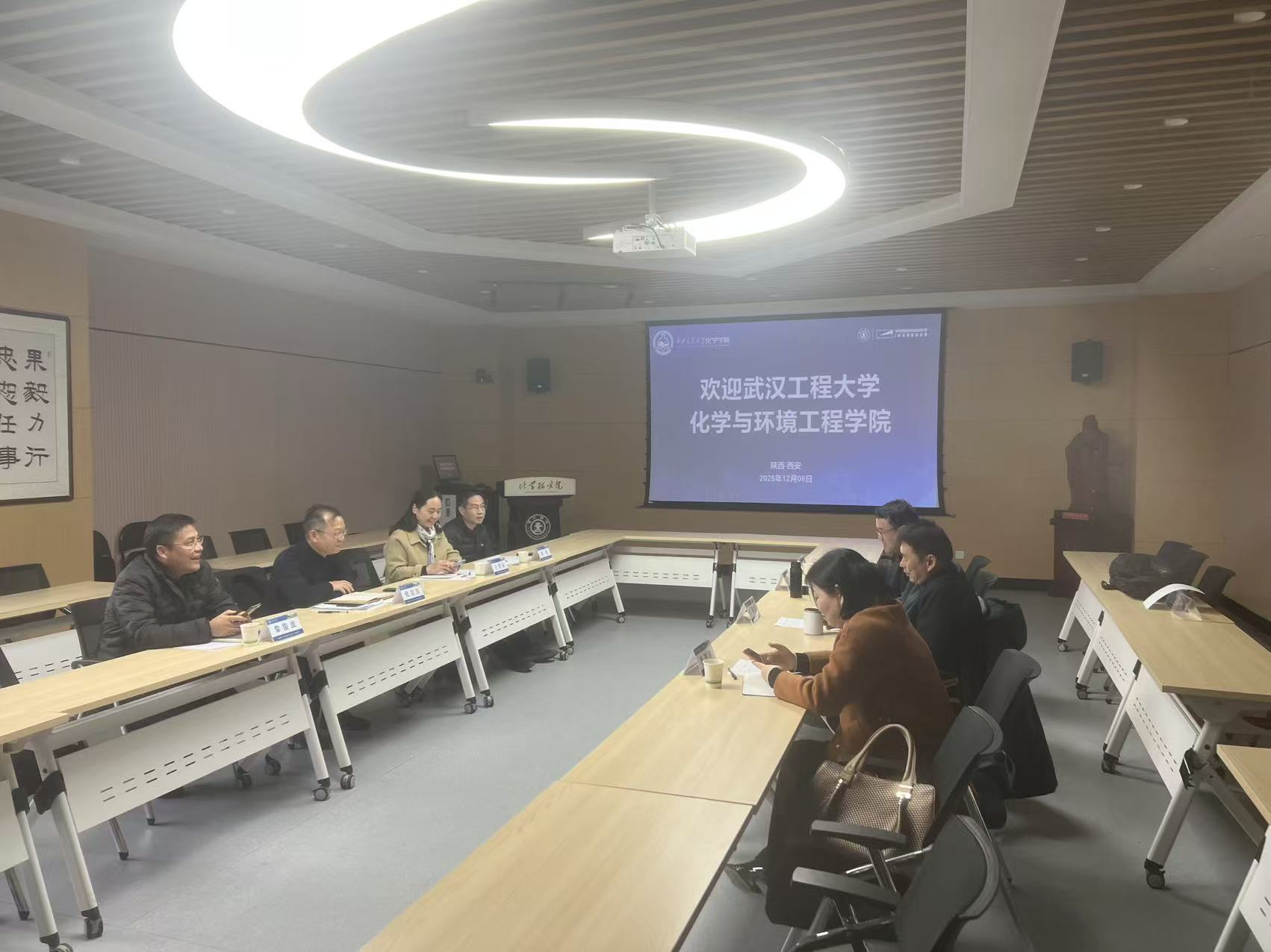 12月8日,化学学院与武汉工程大学化学与环境工程学院举行交流座谈会,旨在深化化学领域专业建设与人才培养、学科建设与特色发展。参加座谈交流的有武汉工程大学化学与环境工程学院党委书记张宗良、副院长黎俊波、王营茹教授、刘东副教授以及化学学院院长丁书江、副院长李银环、院办王勇以及能动学院徐浩教授。