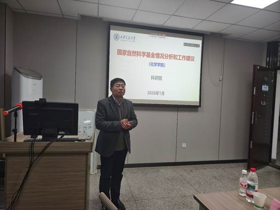 会上,科研院副院长刘永忠教授作动员讲话。他对化学学院在基金申报工作中展现的积极态度给予充分肯定,并结合2025年申报与获批数据展开深入分析。他指出,目前化学学院可承担基金有效人数138人,在研项目87项,人均在研项目0.63项。针对学院在“十四五”期间尚未覆盖的青年基金A类、重点国际合作项目、国家重大科研仪器研制项目,刘永忠强调,应提前谋划布局,鼓励全院教师积极利用各类学术交流平台,加强与领域内专家的深入沟通,持续提升个人学术影响力。他希望全体教师早做准备、深耕细作,全力投入2026年度基金申报工作,力争实现项目立项率和资助质量的稳步提升。