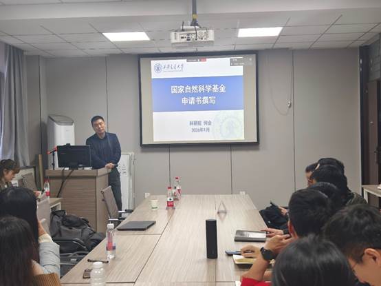 随后,科研处副处长何会聚焦申报人普遍关注的核心问题,对2026年基金申报书改版要点、限项规则调整等政策变化进行详细解读。他采取“逐部分拆解+优秀案例剖析”的方式,系统讲解了基金申请书的撰写逻辑、核心要素与规范要求,并从立项依据、研究内容、研究基础等方面逐一提供了针对性指导。最后,何会副处长特别强调,应紧密围绕基金委“十五五”学科规划,主动加强与基金委学科处的沟通对接,积极参与规划研讨,从而精准把握申报方向。