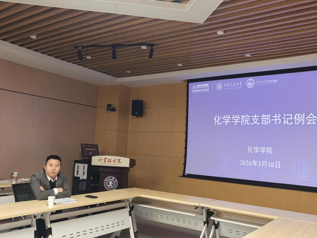2026年3月10日,化学学院在创新港19号楼2105会议室召开党支部书记述职评议考核会。学院13个党支部书记依次作2025年度工作述职,接受现场考核评议。学院党委书记张志成出席会议并作总结讲话。
